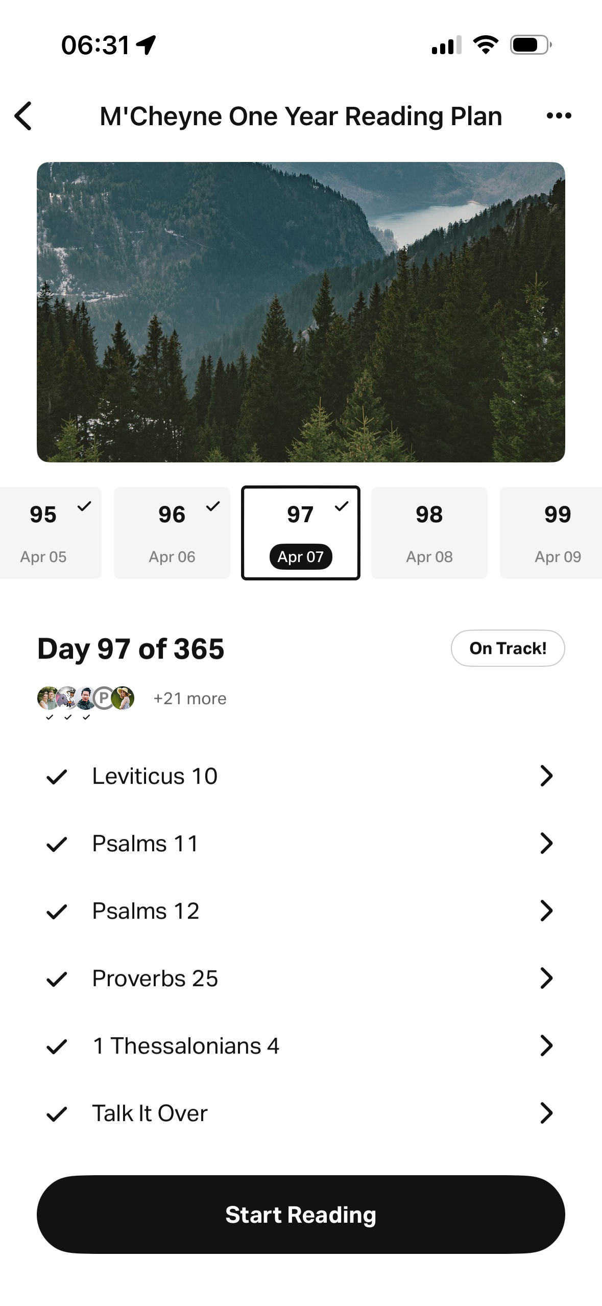 I love reading the Bible chronologically and typically do once a year in a shorter period of time, but reading each day with multiple readings allows you to see the many connected themes that span throughout the entirety of the Bible.
